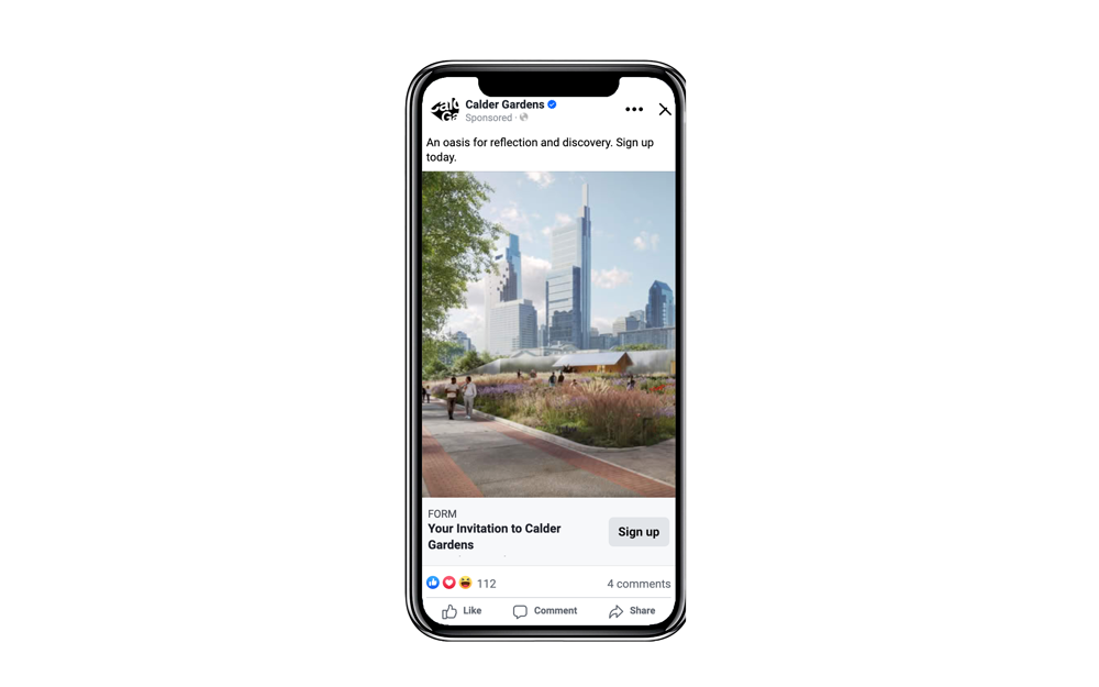 Ahead of its opening weekend, Calder Gardens dedicated a modest media budget to a Meta campaign. With smart targeting (including lookalikes of Barnes Foundation audiences and local arts lovers), they generated thousands of leads at just $0.44 per lead.